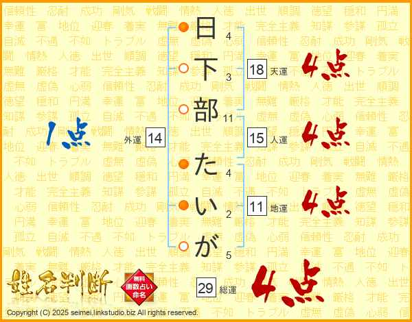 日(4画)下(3画)部(11画) た(4画)い(2画)が(5画)