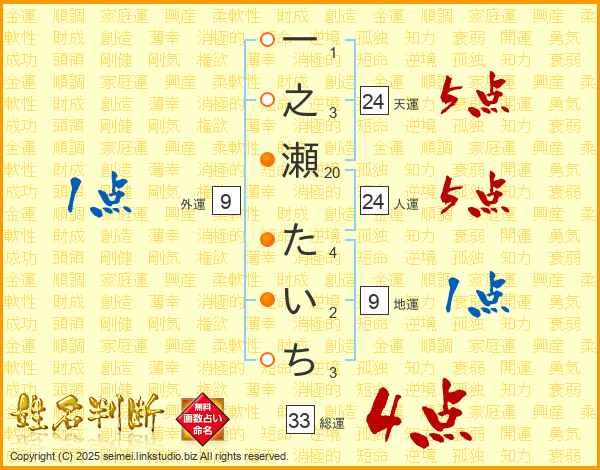 一(1画)之(3画)瀬(20画) た(4画)い(2画)ち(3画)