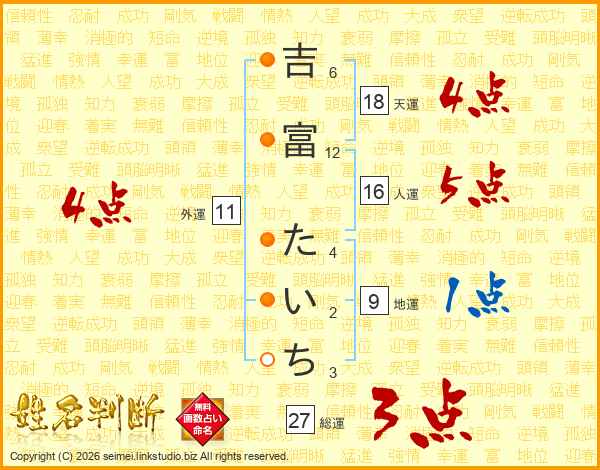 吉富たいちさんの総運は27画の3点!