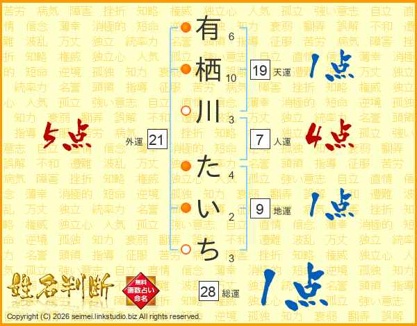 有栖川たいちさんの総運は28画の1点!