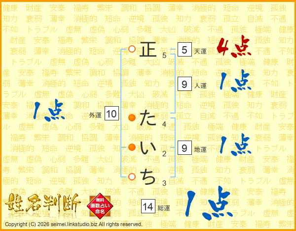 正たいちさんの総運は14画の1点!