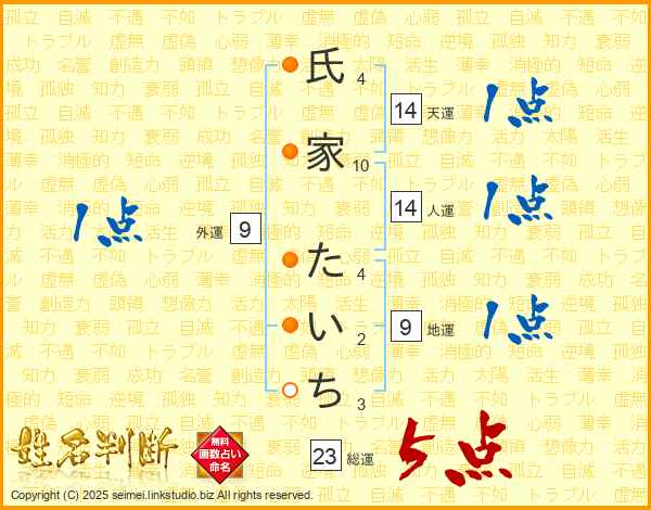 氏(4画)家(10画) た(4画)い(2画)ち(3画)