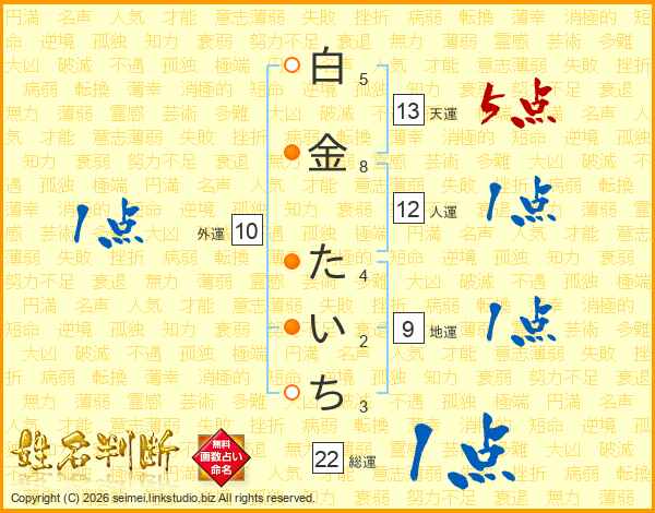 白金たいちさんの総運は22画の1点!