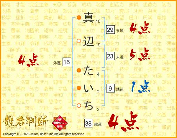 真辺たいちさんの総運は38画の4点!