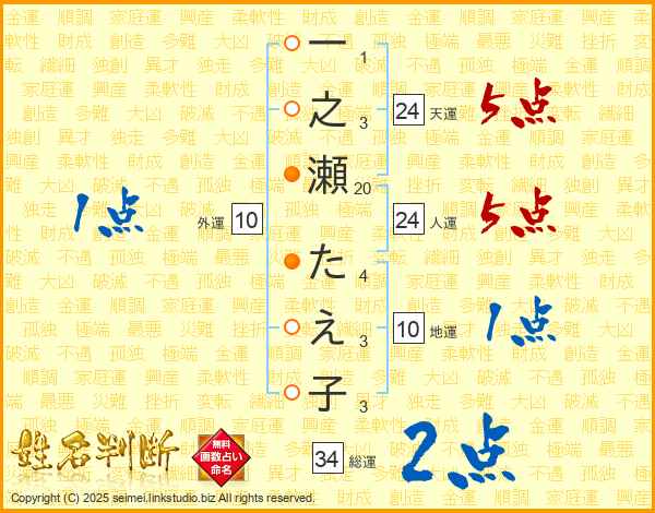 一(1画)之(3画)瀬(20画) た(4画)え(3画)子(3画)