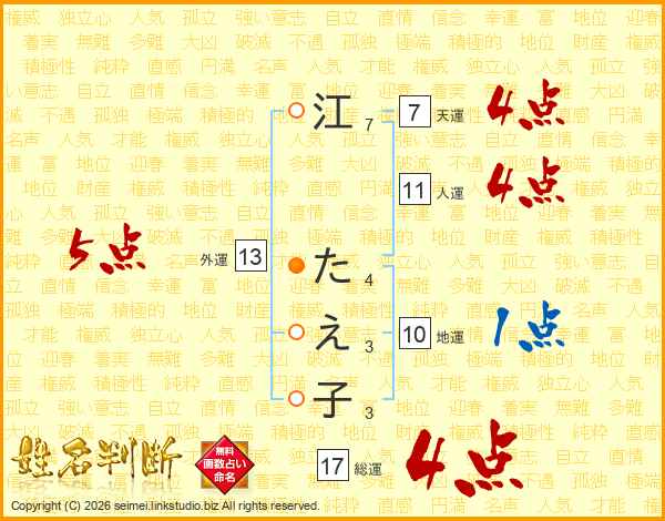 江たえ子さんの総運は17画の4点!