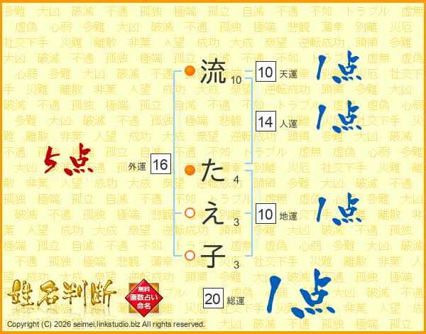 流たえ子さんの総運は20画の1点!