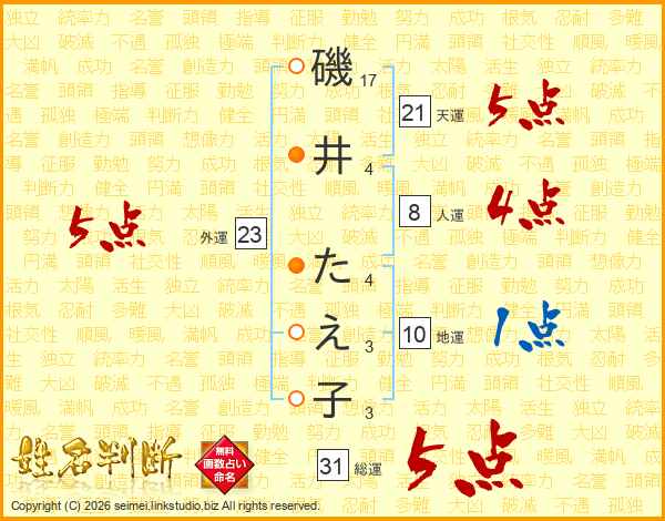 磯井たえ子さんの外運は23画の5点!