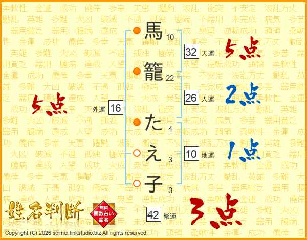 馬籠たえ子さんの総運は42画の3点!