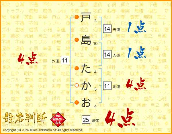戸島たかおさんの総運は25画の4点!