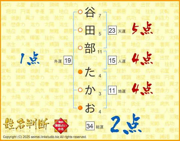 谷(7画)田(5画)部(11画) た(4画)か(3画)お(4画)