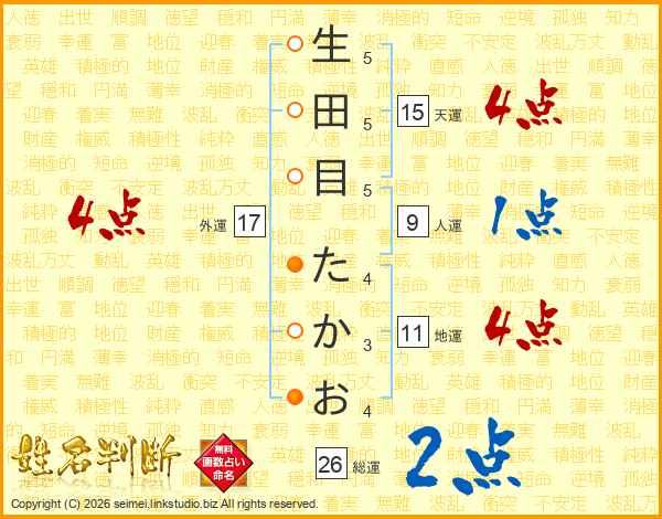 生田目たかおさんの外運は17画の4点!