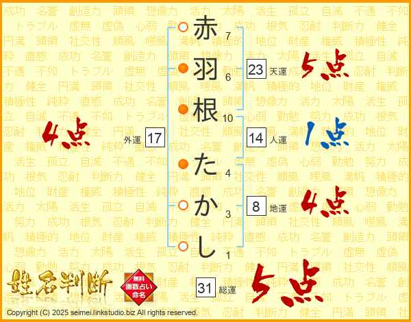 赤(7画)羽(6画)根(10画) た(4画)か(3画)し(1画)