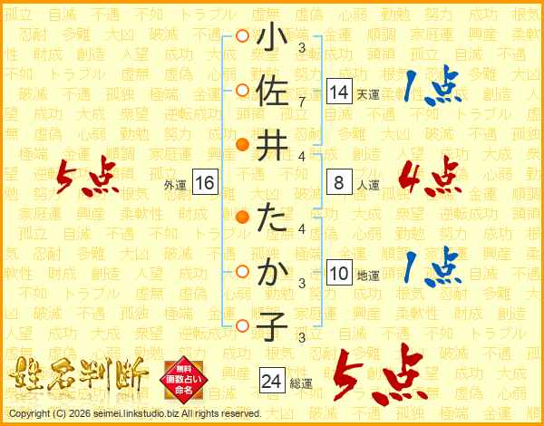 小佐井たか子さんの外運は16画の5点!