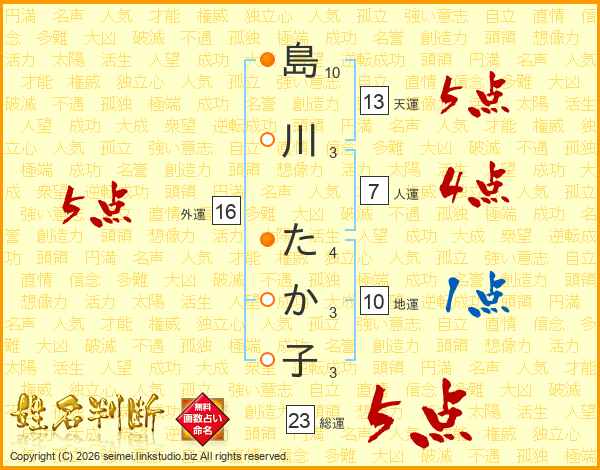 島川たか子さんの総運は23画の5点!