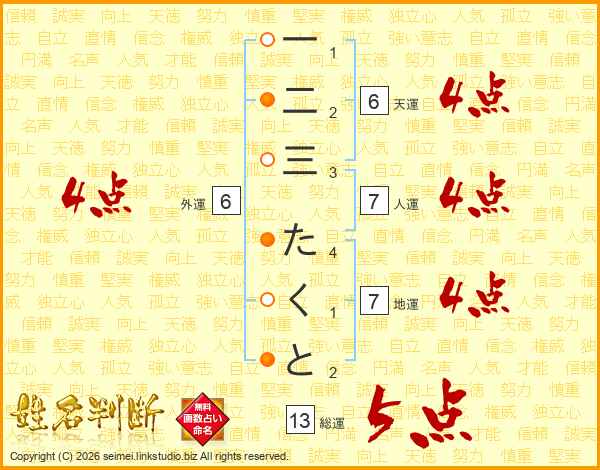一二三たくとさんの総運は13画の5点!