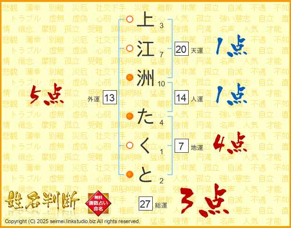 上江洲たくとさんの総運は27画の3点!