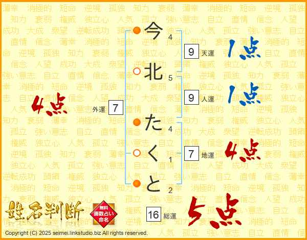 今北たくとさんの外運は7画の4点!