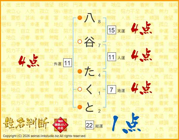 八谷たくとさんの人運は11画の4点!