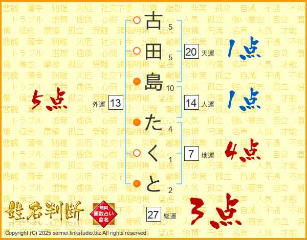 古田島たくとさんの人運は14画の1点!
