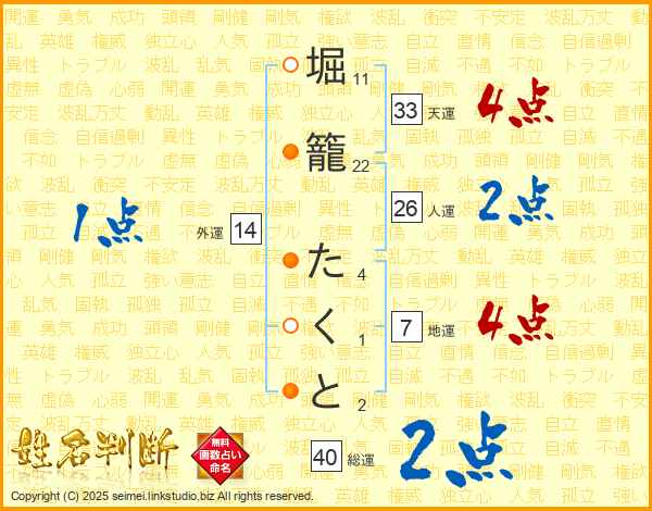 堀(11画)籠(22画) た(4画)く(1画)と(2画)