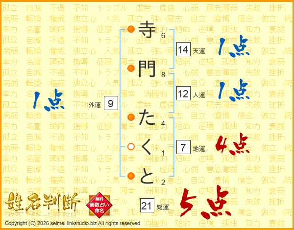 寺門たくとさんの総運は21画の5点!