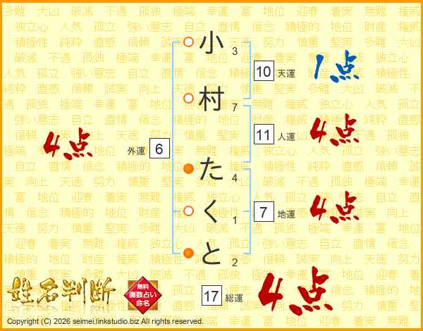 小村たくとさんの総運は17画の4点!