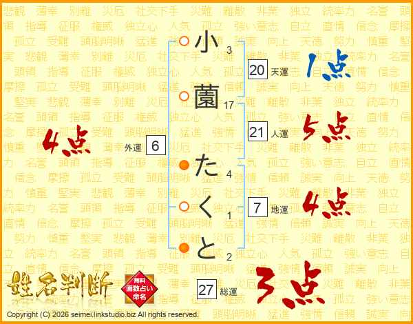 小薗たくとさんの総運は27画の3点!