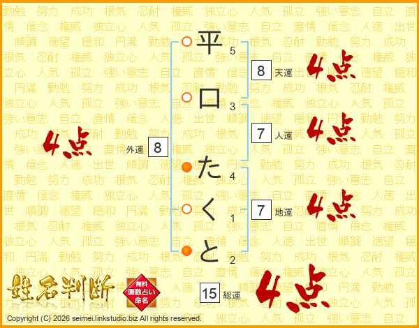 平口たくとさんの総運は15画の4点!