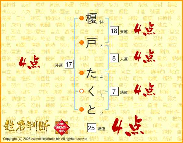 榎戸たくとさんの総運は25画の4点!