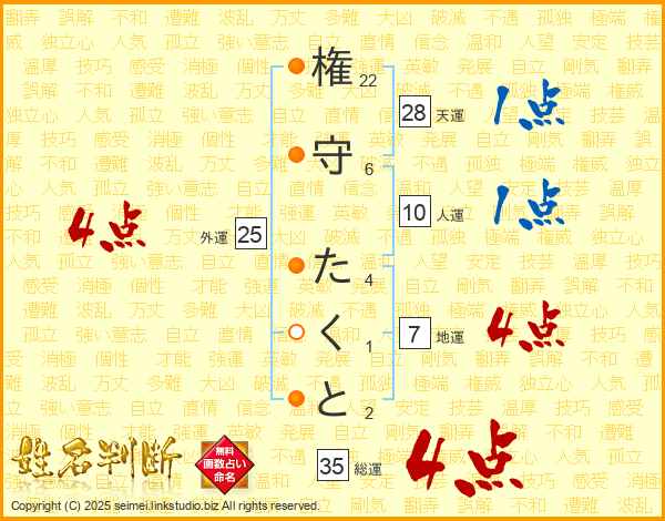 権守たくとさんの総運は35画の4点!