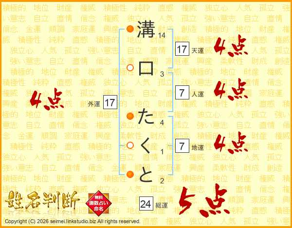 溝(14画)口(3画) た(4画)く(1画)と(2画)