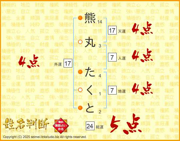 熊(14画)丸(3画) た(4画)く(1画)と(2画)