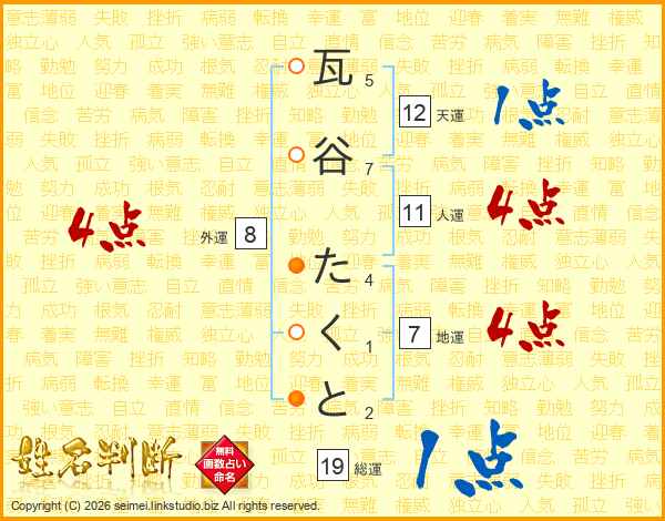 瓦谷たくとさんの総運は19画の1点!