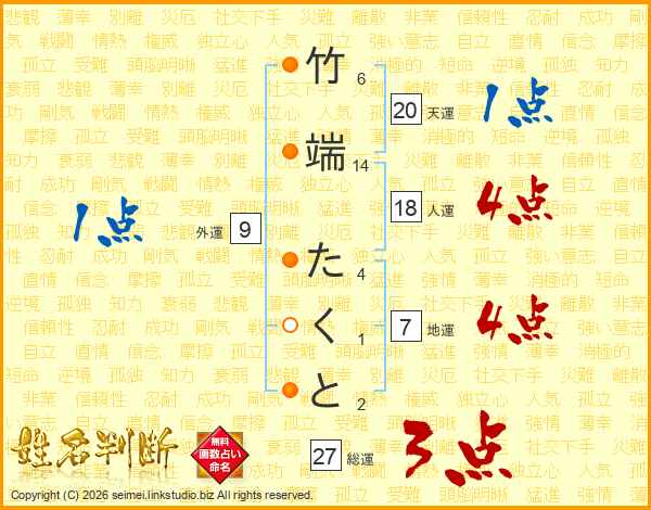 竹端たくとさんの総運は27画の3点!