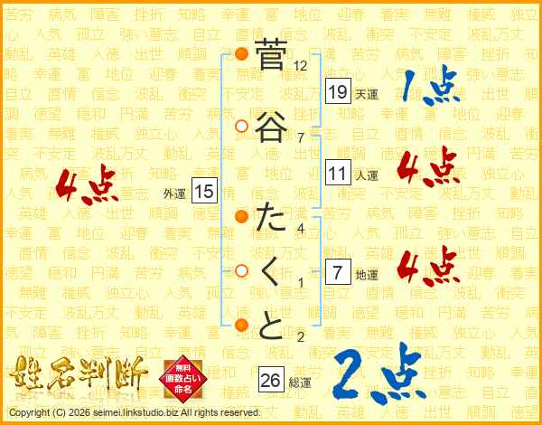 菅谷たくとさんの総運は26画の2点!