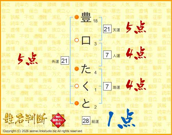 豊口たくとさんの総運は28画の1点!