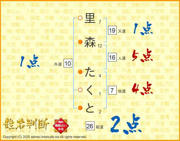 里森たくとさんの地運は7画の4点!