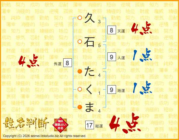 久石たくまさんの総運は17画の4点!