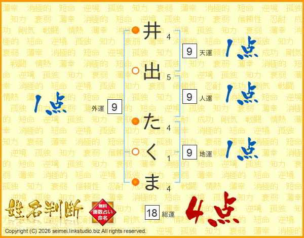 井出たくまさんの人運は9画の1点!