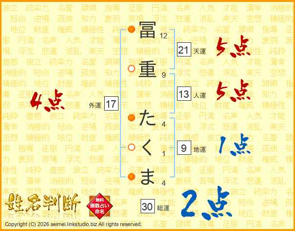 冨重たくまさんの天運は21画の5点!