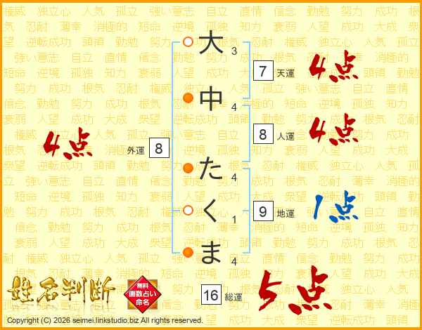 大中たくまさんの天運は7画の4点!