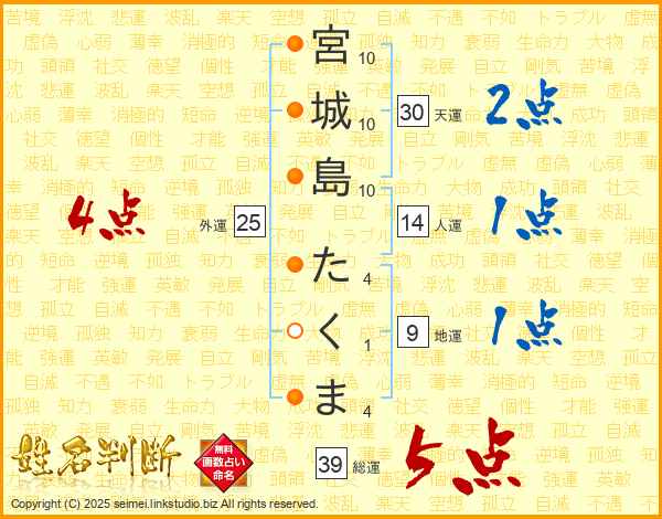 宮城島たくまさんの総運は39画の5点!