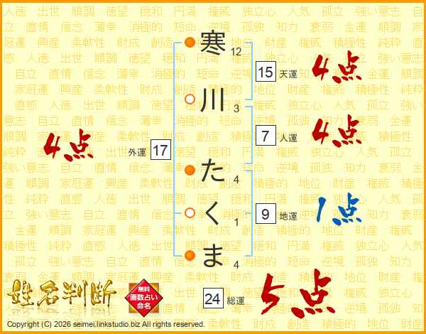 寒川たくまさんの人運は7画の4点!