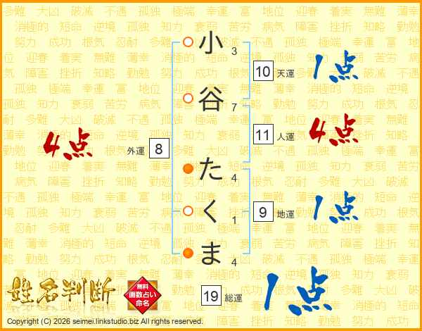 小谷たくまさんの人運は11画の4点!