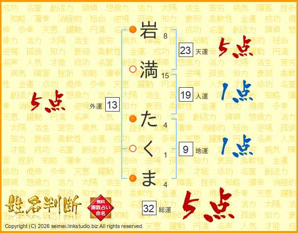 岩満たくまさんの総運は32画の5点!