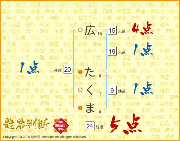 広たくまさんの総運は24画の5点!