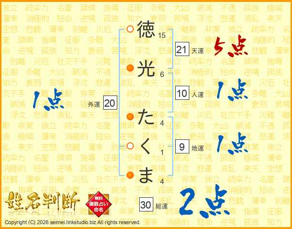 徳光たくまさんの総運は30画の2点!