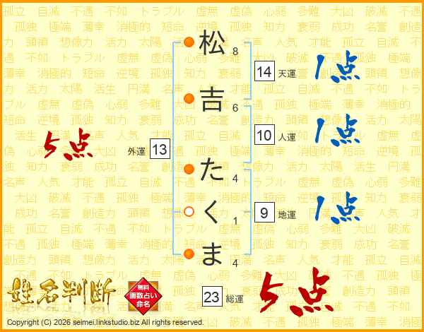 松(8画)吉(6画) た(4画)く(1画)ま(4画)