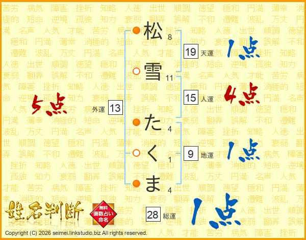松雪たくまさんの総運は28画の1点!